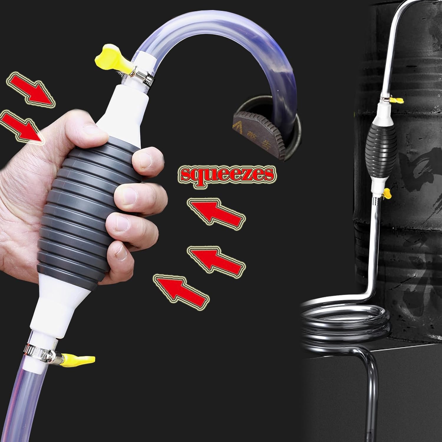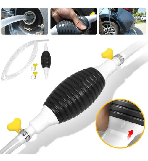 Es una práctica bomba manual equipada con un bombín de succión que, al apretarlo, genera presión y permite transferir líquidos de un envase a otro fácilmente. Perfecta para uso en el hogar, en talleres, en el auto o incluso al aire libre.
